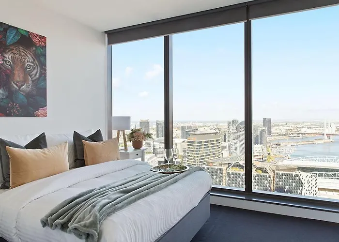 Das 80 m² große A Modern 2Br Apt With Harbour Views Free Parking Melbourne City in Melbourne City befindet sich ungefähr 3 Kilometer vom Zoo Melbourne und ca. 20 Gehminuten von der Eureka Skydeck 88 Aussichtsplattform entfernt. Das 2-Zimmer-Apartment empfängt seine Gäste mit einer Sauna und einem Hallenbad und liegt in 700 Meter Entfernung vom Etihad Stadium.